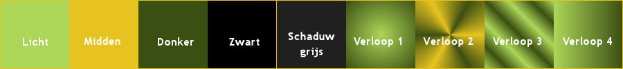 Zet deze kleuren, plus Zwart, eventueel wit, en een donkergrijze schaduwkleur in je palet