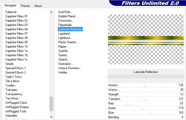 Ga naar Effecten, Filters Unlimited, VM Natural, Lakeside Reflection, 125 – 35 – 12 – 127 – 67 – 119 – 143 – 0