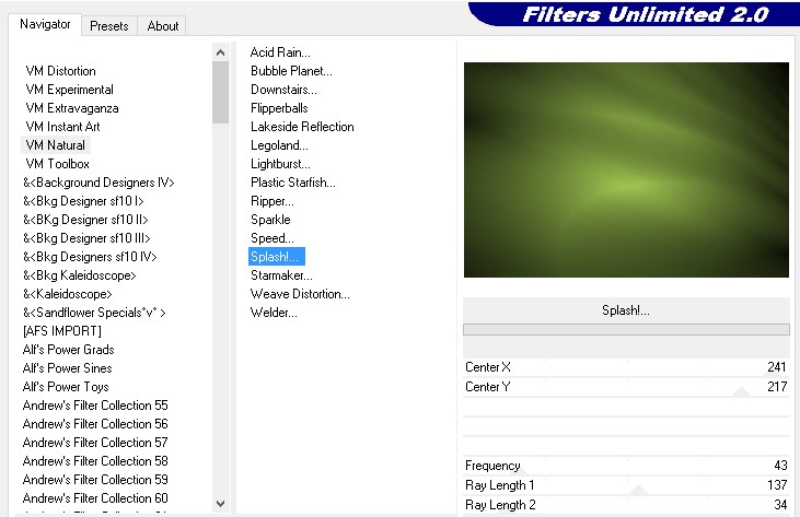 Ga naar Effecten, Filters Unlimited, VM Natural, Splash!, 241 – 217 – 43 – 137 – 34