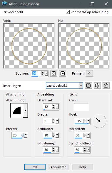 Ga naar Effecten, 3D-effecten, Afschuining binnen, zelfde als punt 7